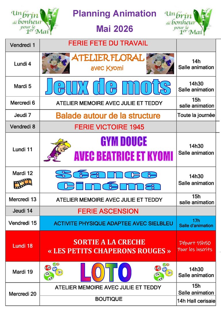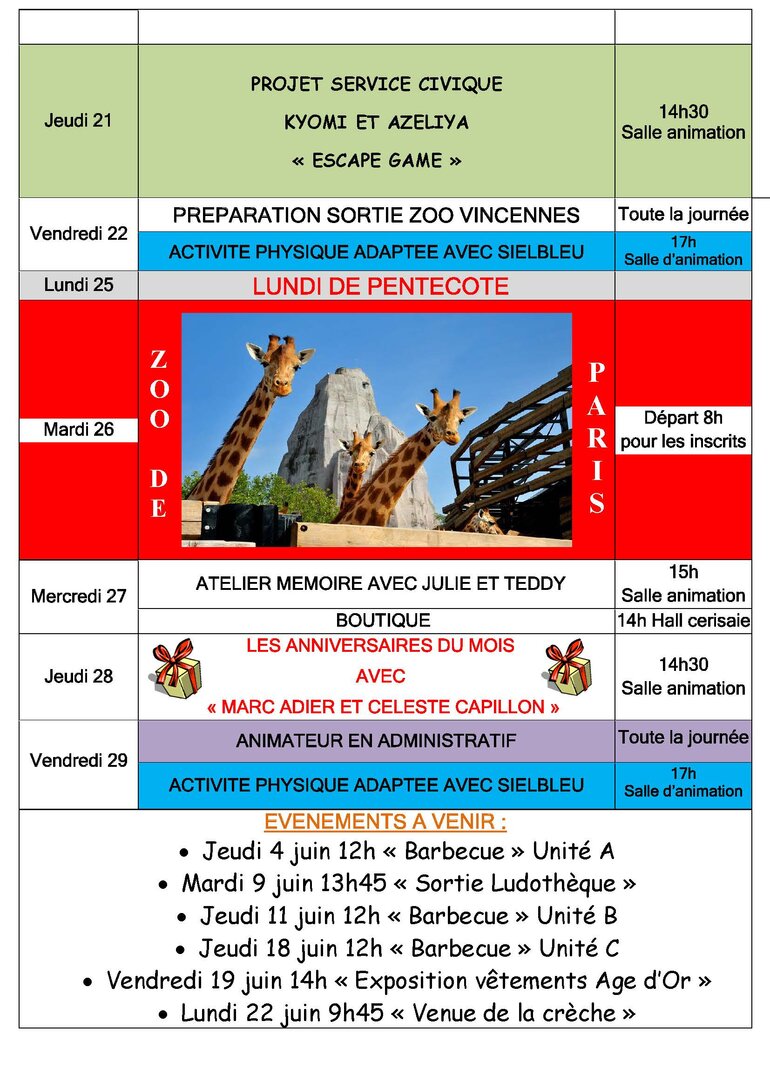 Planning des animations : Juin 2025